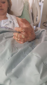 That 24 hours without seeing Jay was the most painful part of my first full day in the burn unit. The scraping and peeling of my flesh was simply a minor distraction. He was just down the hall from me, yet the distance seemed much greater. I had begged every nurse that walked through my door to take me to see him. They insisted that I remain in bed and rest- reminding me that I was "quarantined" due to the high risk of infection. Therefore, it was recommended to stay in my room until my burns were downgraded. Then they would caution me, thinking that I would be too frightened once I saw him. I understood their concern...however, I continued to ask every time someone came to check on me.